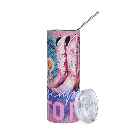 Escape Into Pink: Pink Cowgirl Boots: Specialized Personal Stainless Steel Tumbler w/Straw