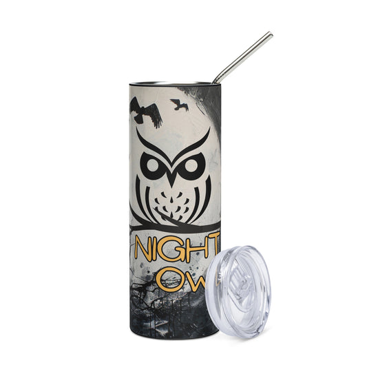 Halloween Night Owl: Reusable Stainless Steel Water Tumbler w/Straw