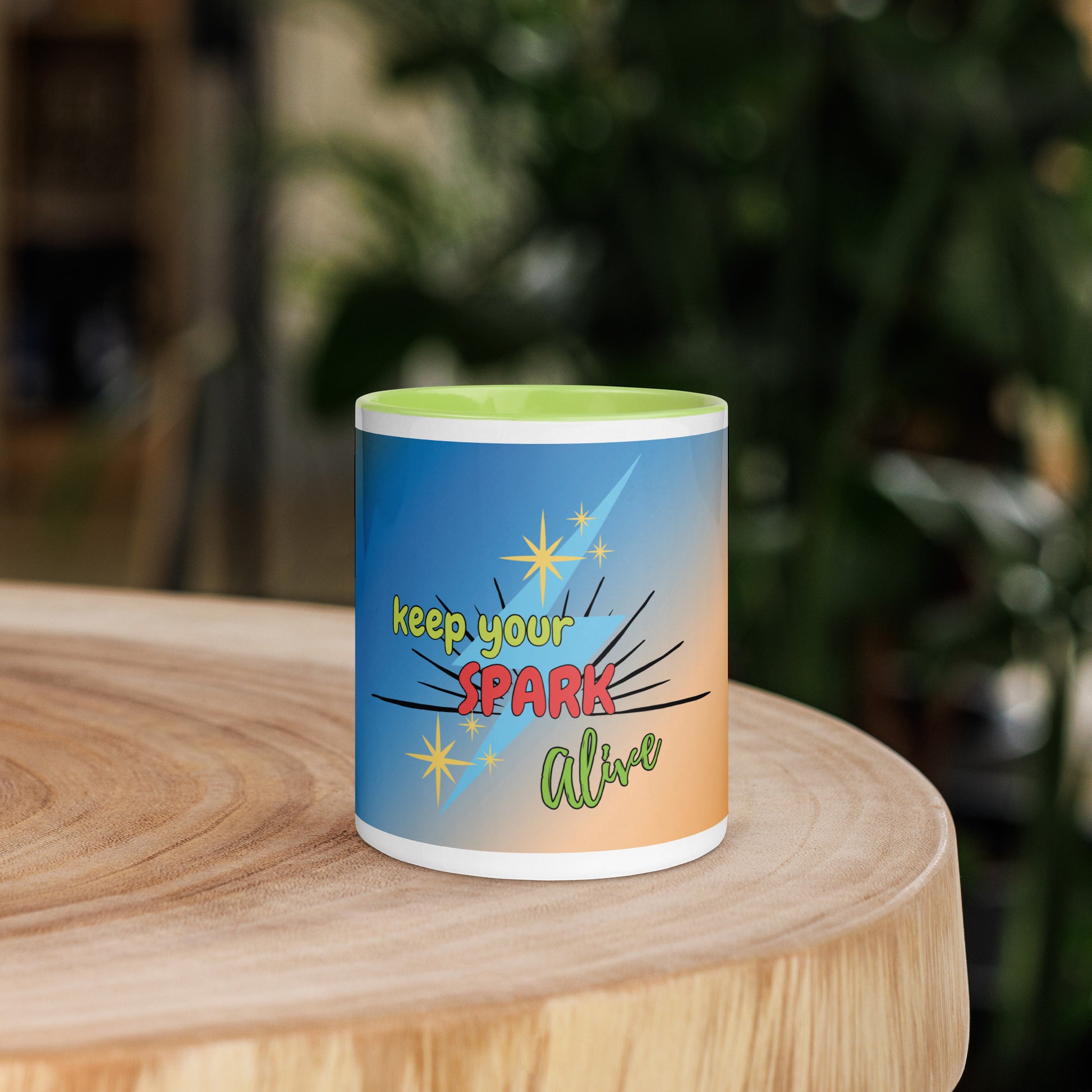 Spice Up your day with this motivational specialized, design and classic ceramic mug with color accenting inside and on the handle. Give yourself a boost to tackle the day's work!