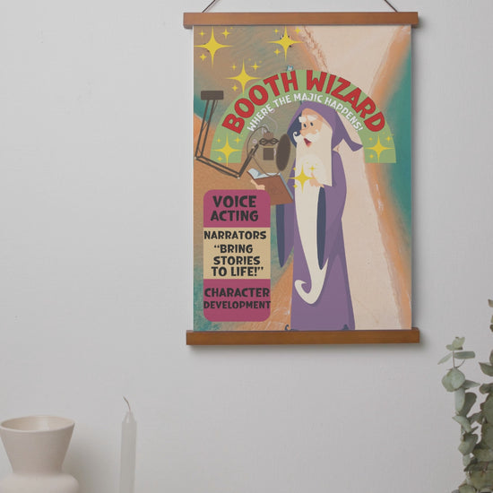 Wizard In The Booth: Voice Actor: Stylish Hanging Art Poster w/Natural Wood